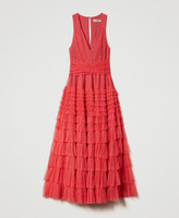 Abito longuette in tulle con balze