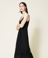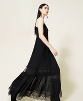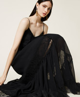 Abito lungo in chiffon con pizzo