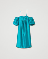 Abito lungo della collezione Actitude in duchesse con scollo dritto. Ha la chiusura con zip sul fianco, spalline sottili, maniche balloon rimovibili rifinite da arricciatura, spacco al fondo sul retro, foderato, linea morbida. Questo abito è perfetto per un matrimonio o per una cerimonia.