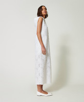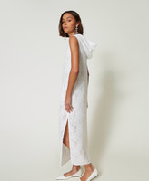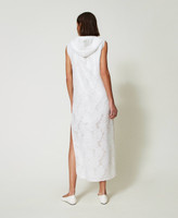 Abito lungo collezione Actitude in full paillettes effetto lucido con motivo floreale in fil coupé. Presenta un collo con cappuccio e coulisse con terminali in metallo, giromanica rifiniti in georgette a taglio vivo, tasche ai fianchi con logo, spacchi laterali al fondo, foderato, linea dritta.
