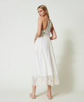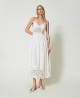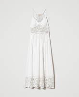 Abito lungo in maglia di cotone con introdure e bordo al fondo realizzati in telaio crochet, coppe e gonna in tessuto fil coupé.
