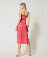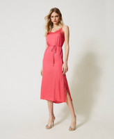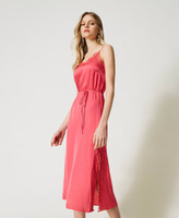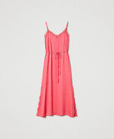 Abito sottoveste lungo in raso con scollo profondo e spacchi rifiniti da pizzo Valenciennes, spalline sottili, cintura abbinata.