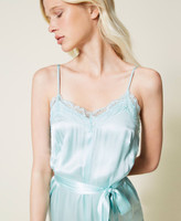Abito sottoveste in raso leggero con dettagli rifiniti da pizzo Valenciennes con smerli applicato ad intarsio.