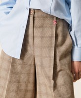 Bermuda firmati dall’artista Myfo per la collezione Actitude in tessuto misto viscosa a fantasia check. Ha ricami logo piazzati a filo, passanti in vita, chiusura con zip e bottone, pieghe davanti, tasche ai fianchi, linea morbida.