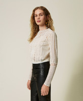 Blusa in mussola con pizzo e ricami