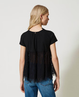 Blusa in popeline e sangallo