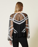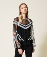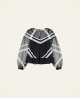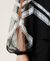 Blusa in tulle liscio e point d'esprit, con bordi di pizzo Valenciennes applicati a disegno geometrico, top abbinato.
