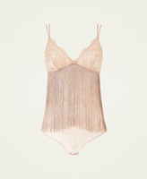 Body in pizzo e tulle con frange