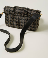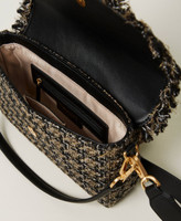 Borsa a tracolla 'Amie' top handle in tessuto tweed con filo di lurex color oro all’interno della trama, dettagli effetto pelle di vitello liscio, profili patta e cinturino sfrangiati. Logo Oval T in metallo, chiusura con patta e magnete, doppia vestibilità con manico a mano o a spalla e tracolla effetto pelle, entrambi rimovibili, foderata.