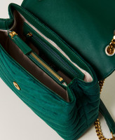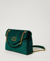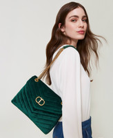 Borsa a tracolla 'Dreamy' in velluto liscio con dettagli effetto nappa in tinta e lavorazione trapuntata a losanghe. Chiusura con patta e magnete, tracolla in catena scorrevole con spallaccio effetto pelle per una doppia portata, logo Oval T in metallo color ottone chiaro, foderata.