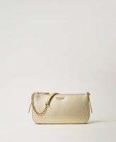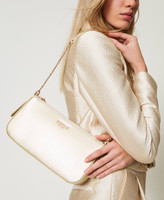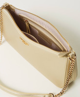 Borsa a tracolla ‘Passepartout’ effetto pelle di vitello nappato liscio con sviluppo orizzontale. Ha la chiusura con zip, la tracolla a spalla effetto pelle con inserti in catena e logo lettering in galvanica color oro, foderata.