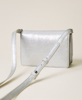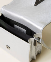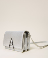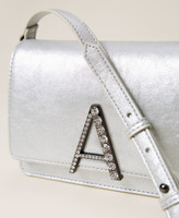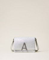 Borsa a tracolla collezione Actitude effetto nappa laminata con patta e magnete, logo con strass, doppio comparto.
