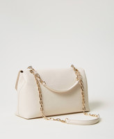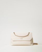 Borsa a tracolla effetto pelle di vitello liscio personalizzata con logo Oval T in metallo. Ha chiusura con patta sagomata e magnete, tasca piatta davanti, tracolla in catena scorrevole per una doppia portata, a spalla e cross-body, spallacci effetto pelle per un maggiore comfort, galvaniche color oro satinato. Costruzione interna con tramezzo centrale e fodera.