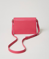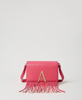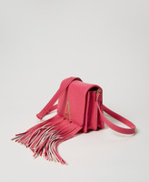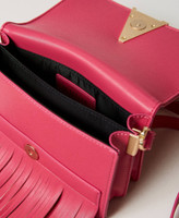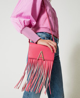 Borsa a tracolla collezione Actitude effetto pelle con doppio soffietto, chiusura con patta e magnete, logo in metallo, frange in tono.