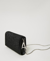 Borsa clutch collezione Actitude ricoperta da strass, tracolla in catena rimovibile, chiusura con magnete, logo charm in metallo.