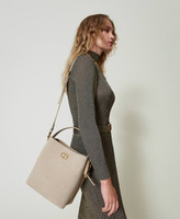 Borsa secchiello ‘Chelsea’ made in Italy in pelle effetto camoscio con dettagli in pelle di vitello liscio. Ha la chiusura con magnete e tasca centrale interna con zip, il manico a mano regolabile, la tracolla cross-body rimovibile con moschettone, il logo Oval T in ottone chiaro.