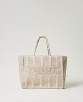 Borsa shopper 'Bohémienne' in maglia lavorata tricot con logo ricamato in leggero sovratono al centro. Ha chiusura con magnete, doppio manico in tessuto per una portata a mano o a spalla, foderata.