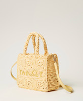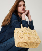 Borsa shopper ‘Bohémienne’ in crochet di cotone intrecciata a mano con logo ricamato in tono al centro davanti. Ha il doppio manico a mano e la tracolla effetto pelle rimovibile per una portata cross-body, l’apertura smerlata. All’interno, contiene una borsa a sacchetto in canvas color naturale chiusa da coulisse.