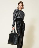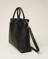 Borsa shopper morbida a grana sottile, con logo Oval T, doppio manico, tracolla rimovibile, zip a doppio cursore.