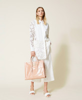 Borsa shopper in pelle con lacci
