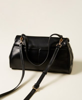 Borsa top handle effetto pelle di vitello verniciato semilucido con grana dall’aspetto naturale. Ha chiusura con patta e clip, manico sagomato a mano o a spalla e tracolla regolabile e rimovibile per indossare il modello cross-body, logo Oval T verniciato in tinta su base in metallo color oro. Foderata e con doppio comparto interno.