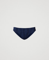 Brasiliana da bagno con disegno imprimé, cucitura dietro, fodera a tinta unita e logo a cuore in metallo sul retro.