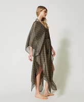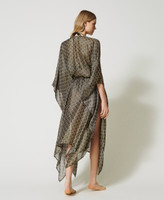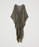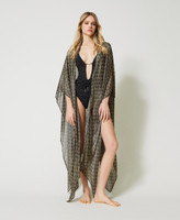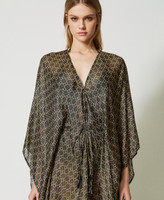 Caftano lungo in tessuto jacquard con logo Oval T all over, linea a kimono, cintura abbinata.