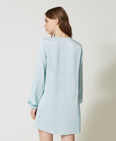 Camicia da notte in raso di viscosa con scollo a V rifinito da pizzo bicolore smerlato, maniche lunghe con elastico ai polsi.