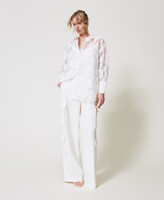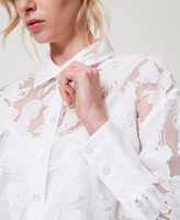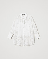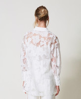 Actitude collection long shirt made from transparent fil coupé organza with floral pattern. Button fastening, long sleeves with cuffs, removable matching slip, straight mannish fit.