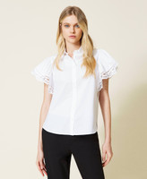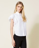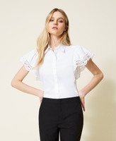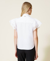 Camicia in popeline di cotone stretch con maniche corte a farfalla rifinite da bordo di pizzo geometrico.