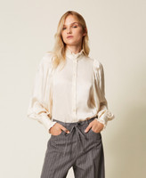 Camicia in raso jacquard con volant