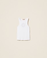 Canotta in cotone lavorato a costine con ricamo floreale a intarsio davanti d'ispirazione mandala. Ha collo tondo e linea fitted.