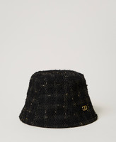 Cappello bucket in tessuto bouclé personalizzato con placchetta logo Oval T color ottone chiaro.