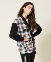 Cardigan collezione Actitude in full paillettes a disegno check, con maniche in punto Milano stretch, profili a costine.