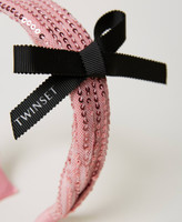 Cerchietto in tessuto ricamato da paillettes con dettaglio a fiocco cucito e logo a contrasto.