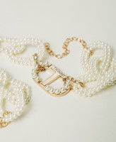 Collana a giro con design a catena di perle con logo Oval T di strass crystal e galvanica oro chiaro, chiusura con catena regolabile e moschettone.