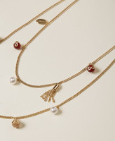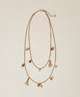 Collana a doppio giro con mix di ciondoli e pietre dure personalizzate da logo, placchetta con logo lettering inciso, chiusura regolabile con moschettone.
