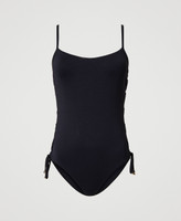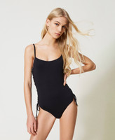 Costume intero con ferretto, non imbottito, laccetti ai fianchi con coprinodo in metallo, spalline regolabili.