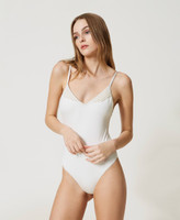 - 85% poliammide 15% elastan. Ricamo: 100% cotone. Fodera: 100% poliestere.