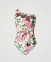 Costume intero monospalla con stampa a rose, ricamo patch applicato, non imbottito, cintura abbinata.