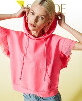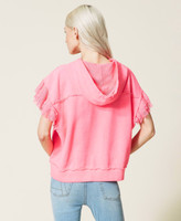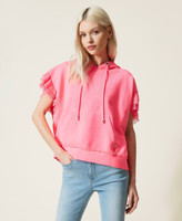 Felpa boxy collezione Actitude effetto délavé con cappuccio e coulisse, balze di tulle sulle maniche.