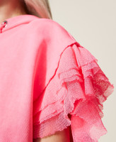 Felpa boxy con balze in tulle