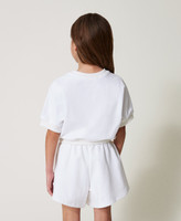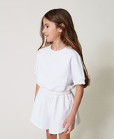 Completo da bambina in cotone stretch con profili a costine e linea morbida. È composto da felpa con Oval T embossed, maniche corte a kimono e shorts con elastico in vita.