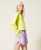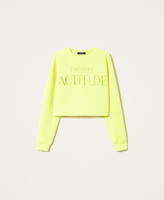 Felpa cropped collezione Actitude in scuba con girocollo, maniche lunghe, logo ricamato in filo davanti.
