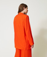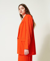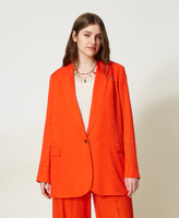 Giacca blazer monopetto in viscosa jacquard a disegno Oval T all over, collo con revers, allacciatura bassa a un bottone.