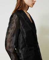 Giacca blazer in organza e pizzo