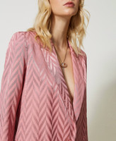Giacca blazer in viscosa jacquard a disegno chevron effetto lucido/opaco con revers a lancia e chiusura a un bottone.
