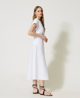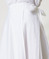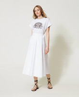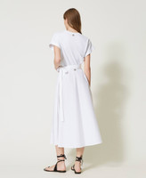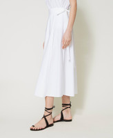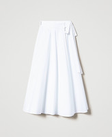 Gonna lunga a portafoglio in popeline di cotone stretch, dalla linea svasata, chiusura al fianco con cintura cucita, sfoderata.