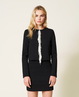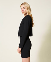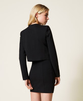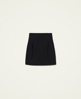 Gonna corta a vita alta in punto Milano stretch, con zip invisibile al fianco, foderata.