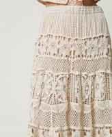 Gonna longuette in cotone crochet con ricami floreali, elastico in vita, fodera in georgette creponne.